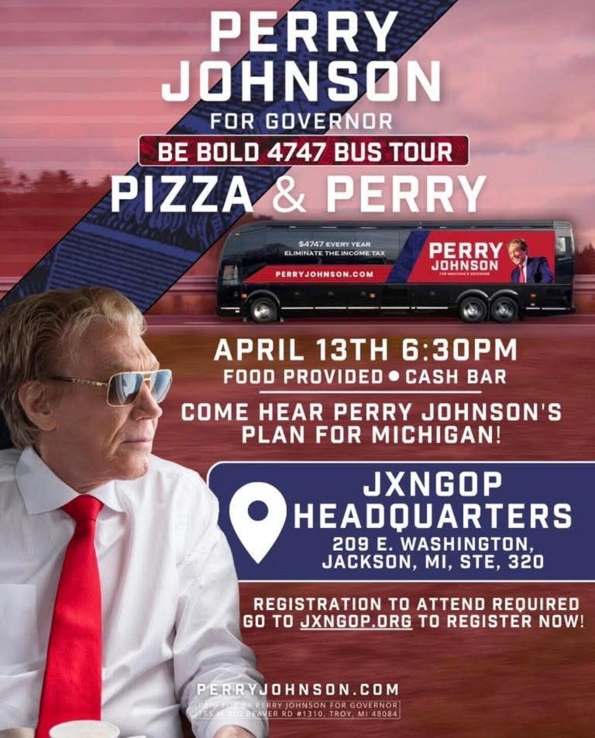 Don't miss this unique opportunity to meet Perry Johnson, the self-made businessman and Republican candidate for Governor of Michigan, at our upcoming Pizza with Perry event. Perry is a proven problem-solver with decades of experience helping companies eliminate waste, improve efficiency, and compete globally. Now he's bringing that same no-nonsense approach to Lansing — with bold plans to eliminate the state income tax, slash wasteful government spending, and put Michigan families and businesses first.