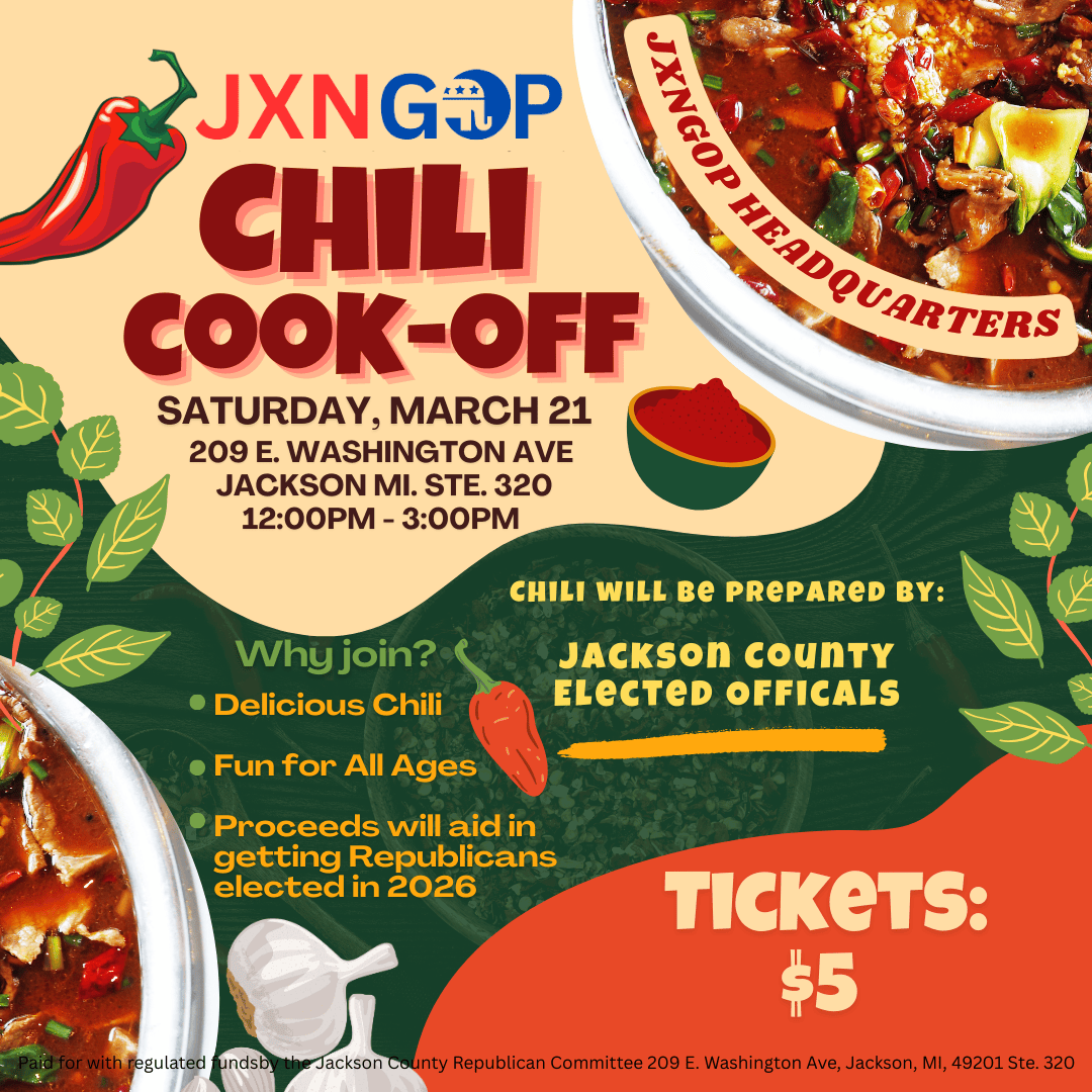 It's all happening on March 21, 2026 in the JXNGOP Headquarters (209 E. Washington Ave, Jackson. Ste.320) Doors open at 11 AM Event Starts at NOON