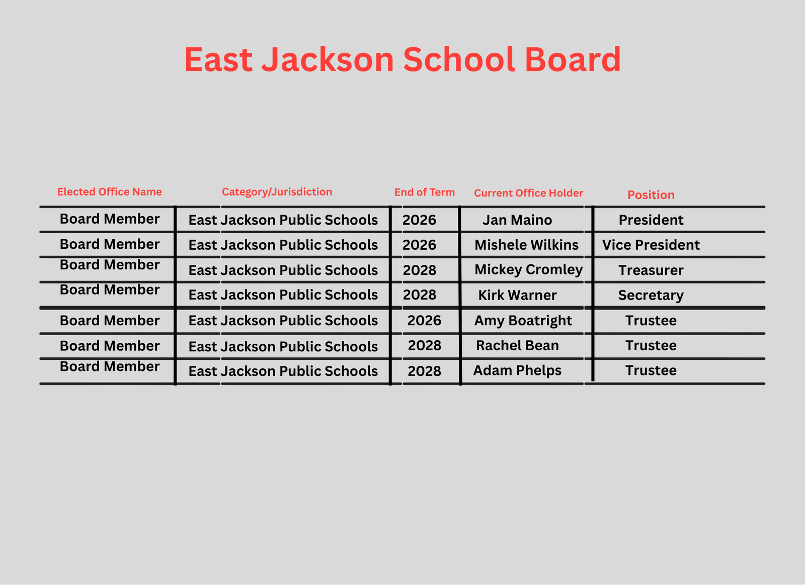 On this page you will find every local school board listed along with the year that each board member is up for re-election.